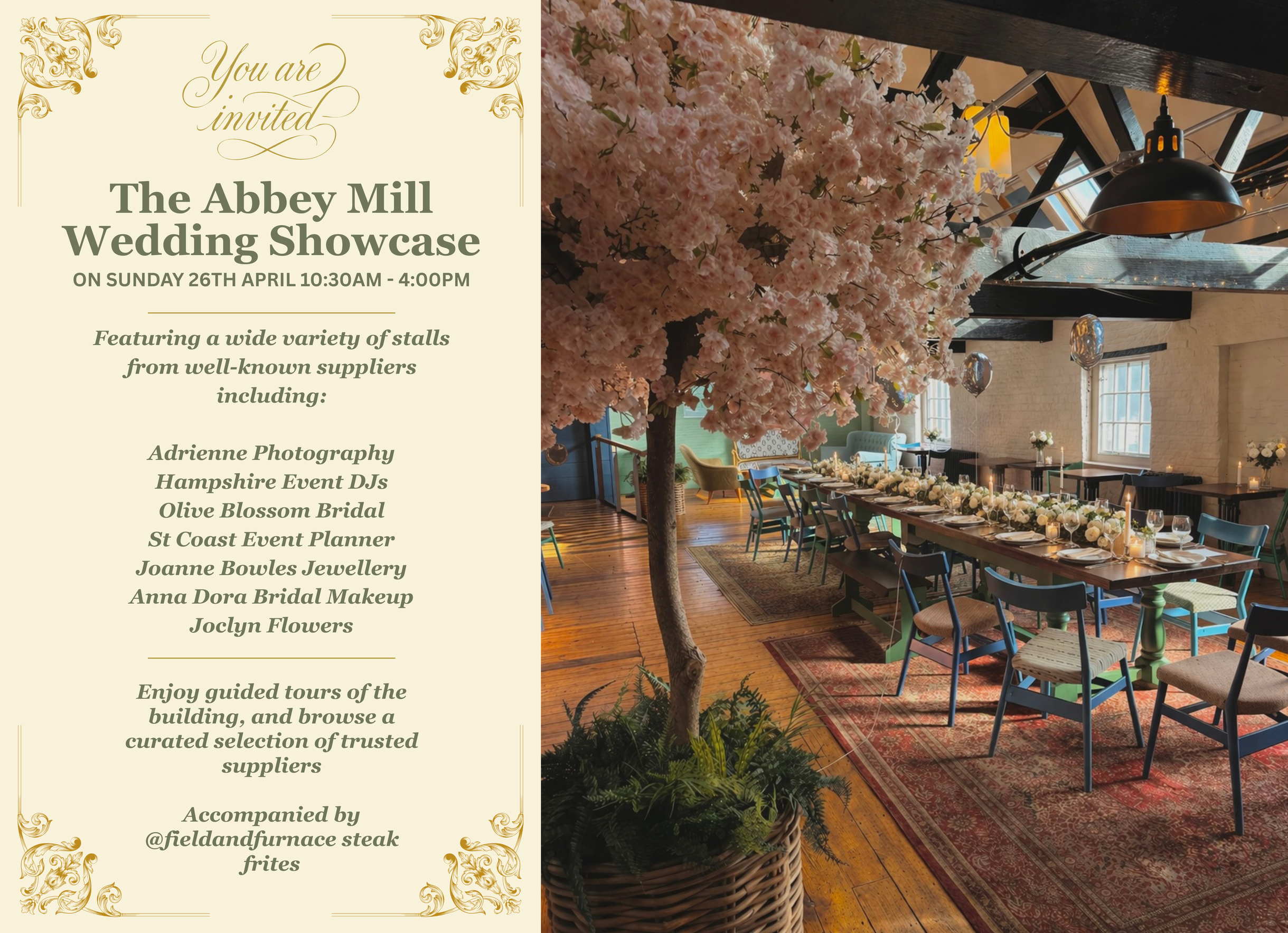 Professional catering options, curated menus and bespoke details available